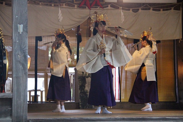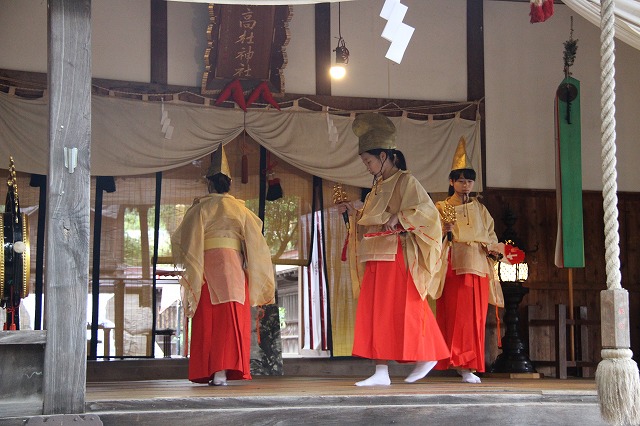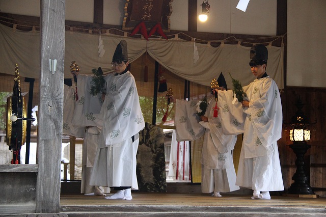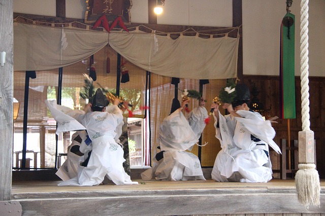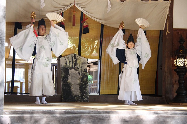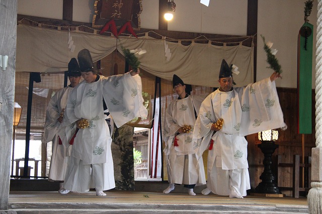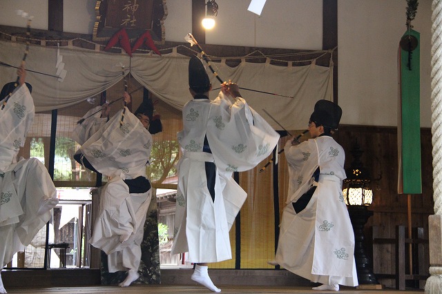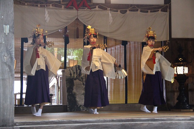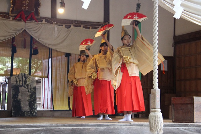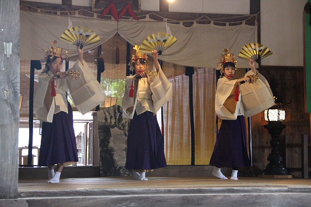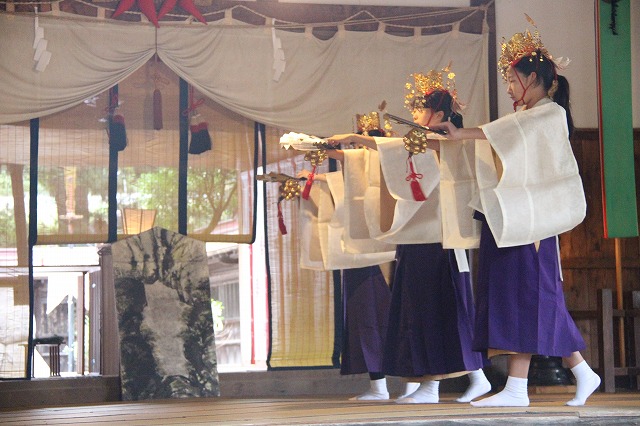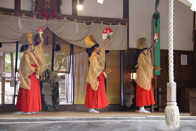 大和遊びの舞、流伝の舞、恵比寿の舞、岩戸開きの舞などで