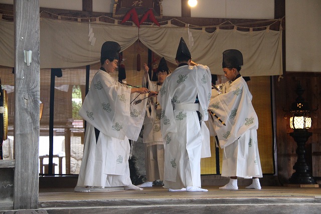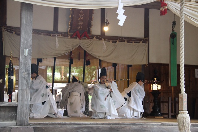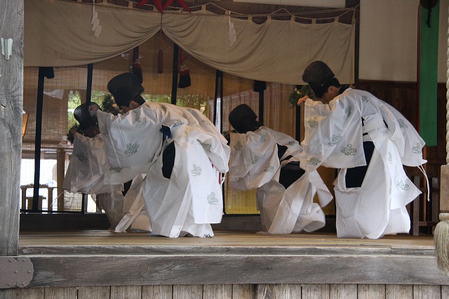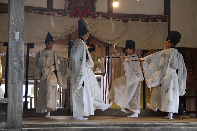 神楽である。禊の舞、龍田の舞、鈴神楽の舞、四弓殿の舞、